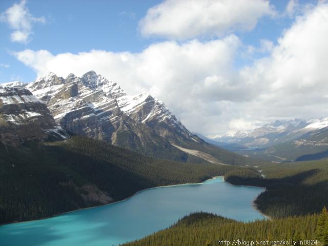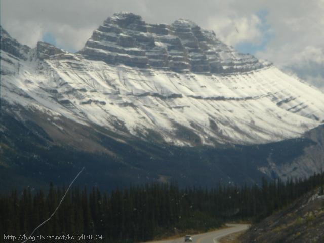 在冰原用完午餐 就往佩投湖方面 途經城堡山↓ 有夠壯觀美麗的啦~