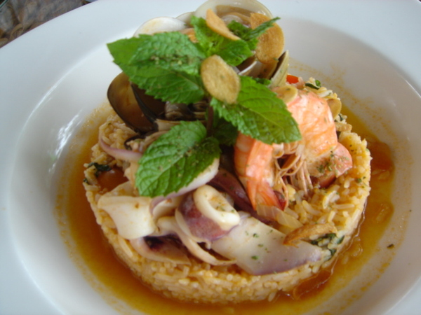 這是我點的~西班牙香料海鮮蕃茄燉飯.......海鮮超多 米飯粒粒皆入味