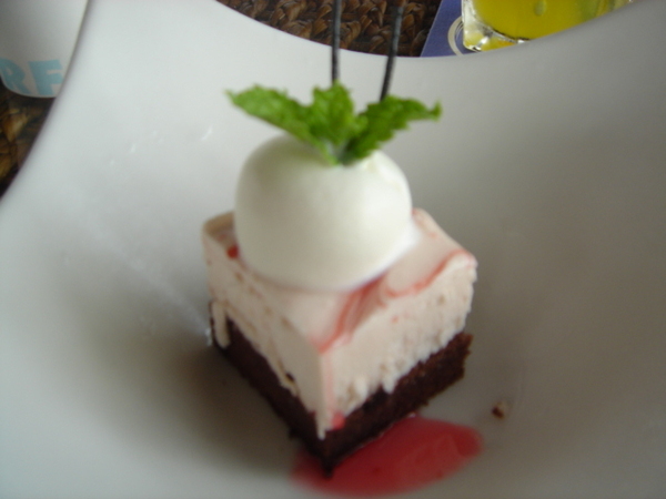 甜點~ 好小 一口就可解決 有點可惜 若蛋糕能在大一點就太完美了.....哈~我好貪吃喔!!